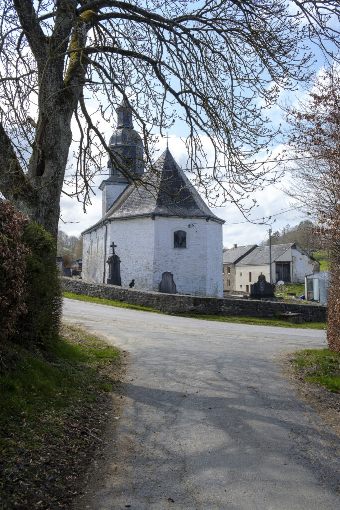 La chapelle des Saints-Anges Gardiens doit avoir été bâtie en 1707 et a été restaurée en 1861. Ce sanctuaire mononef en moellons blanchis de 1707 est relativement isolé et caractéristique dans son cimetière emmuraillé. Sa particularité est sa couleur blanche extérieure. La construction est harmonieusement sommée par un clocheton octogonal à deux étages. Son mobilier est remarquable, il comprend des statues du XVIIIème siècle et une théothèque remontant au gothique tardif. La chapelle, le mur d’enceinte et les alentours ont été classés en 1978.