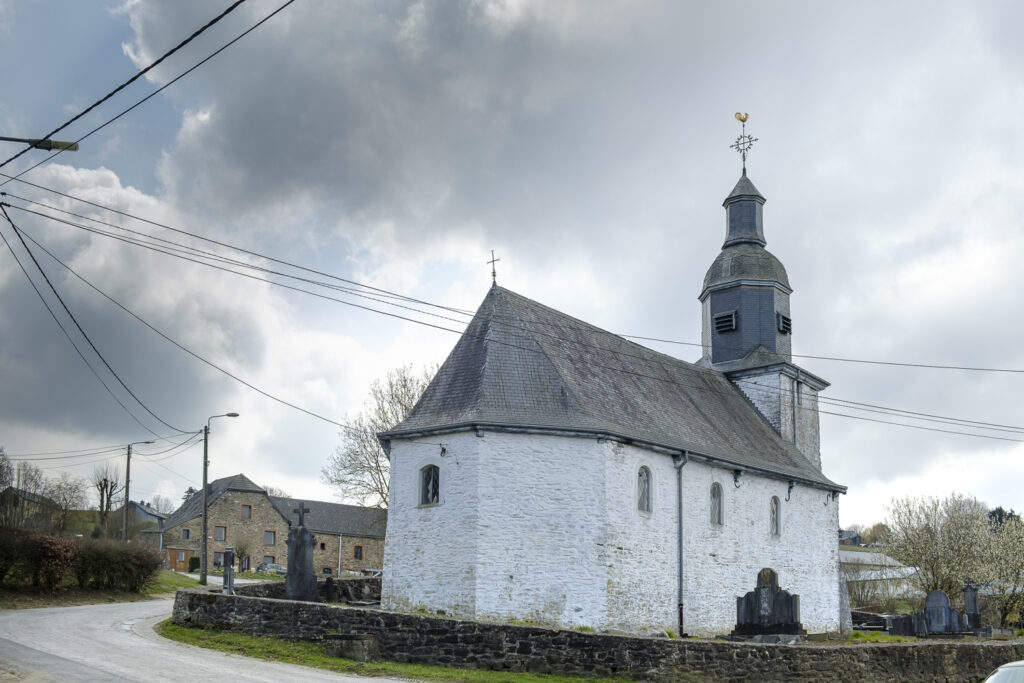 La chapelle des Saints-Anges Gardiens doit avoir été bâtie en 1707 et a été restaurée en 1861. Ce sanctuaire mononef en moellons blanchis de 1707 est relativement isolé et caractéristique dans son cimetière emmuraillé. Sa particularité est sa couleur blanche extérieure. La construction est harmonieusement sommée par un clocheton octogonal à deux étages. Son mobilier est remarquable, il comprend des statues du XVIIIème siècle et une théothèque remontant au gothique tardif. La chapelle, le mur d’enceinte et les alentours ont été classés en 1978.