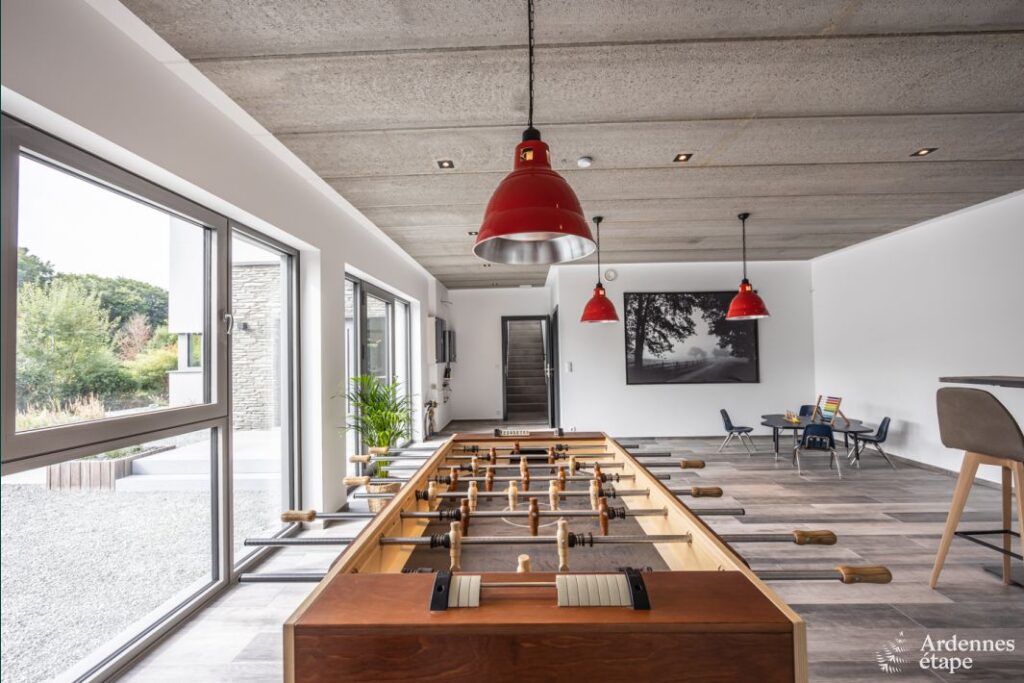 Petits et grands s’amuseront comme des fous dans cette maison de vacances moderne et confortable, à l’intérieur comme à l’extérieur. Le jardin ensoleillé est l’endroit idéal pour profiter d’un savoureux barbecue (aussi en hiver !), se glisser dans le jacuzzi ou organiser un tournoi de pétanque. Le temps se gâte ? Pas de panique : direction la superbe salle de jeux pour une partie de billard ou de ping-pong ! Pour un moment détente, vous avez le choix entre le sauna ou un fauteuil confortable…