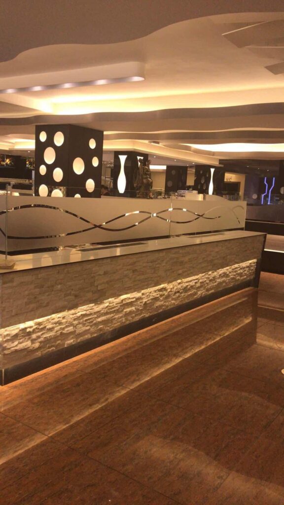Restaurant de grande capacité. Cet établissement propose, en self service, un buffet chaud et un buffet froid, des grillades etc. Menu forfait.