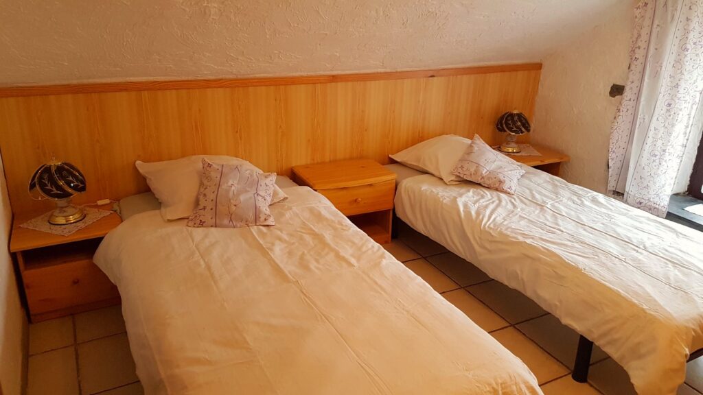 Le gîte est composé de 3 chambres pour 2 personnes, d’un séjour confortable et spacieux munit de meubles en chêne qui s’harmonisant parfaitement avec la pierre du gîte.
