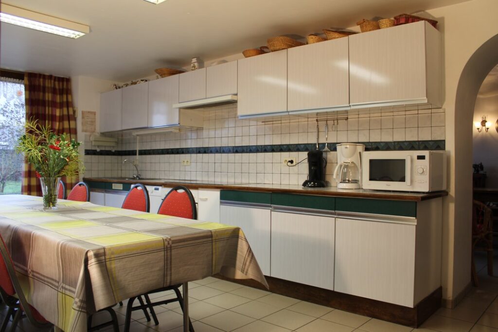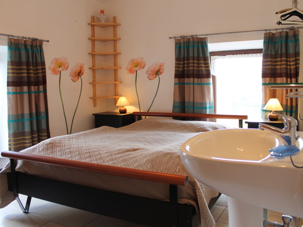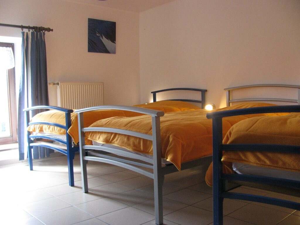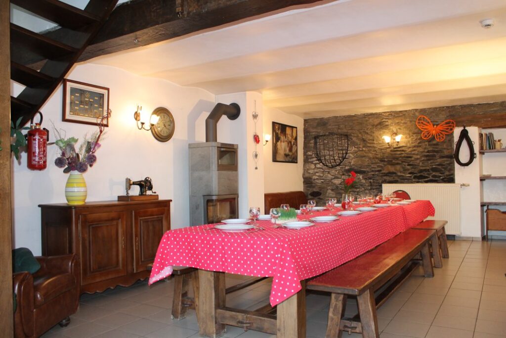 Il est aménagé dans un bâtiment de ferme d’élevage entièrement rénové. Le rez-de-chaussée se compose d’un grand séjour, d’une cuisine et de deux salons. A l’étage se trouvent les 6 chambres (4 chambres de 2 personnes, 1 chambre de 3 personnes et 1 chambre de 4 personnes), une salle de bain et une douche séparée.
