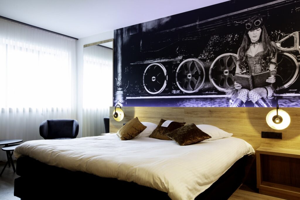 Au total 34 chambres, toutes singulières, lumineuses, à la décoration marquée par l’univers du voyage et des trains renouvellent sans cesse l’expérience du visiteur. Nous proposons un hébergement adapté aussi bien aux voyageurs de loisirs, business, aux familles ou encore aux groupes.
