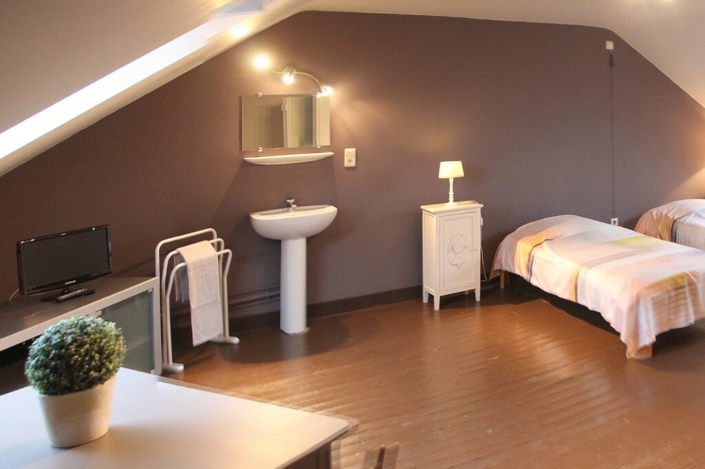 Le gîte comporte 2 chambres avec lits doubles, d’une chambre avec deux lits simples et coin salon, d’une salle de bain, d’un salon, d’une cuisine aménagée et d’un espace repas.
