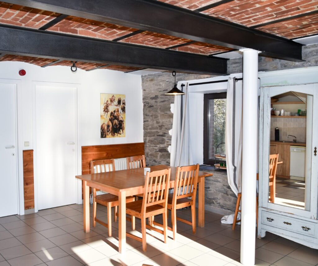 Ce gîte se compose d’un grand living avec un coin salle à manger, une télévision, un coin cuisine équipée, deux chambres de 2 personnes avec lavabo, une salle de bain (bain et lavabo), une salle de douche, une toilette séparée.