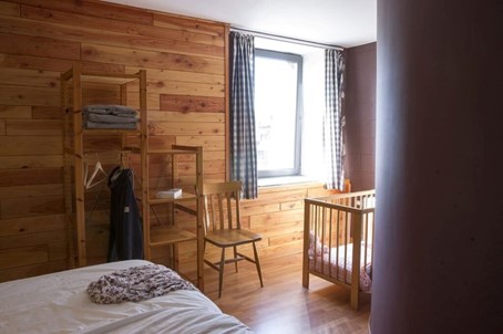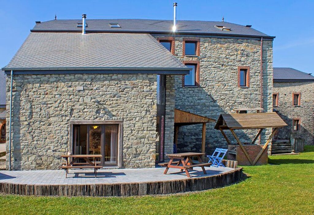 Ce gîte se compose d’une grande cuisine avec espace de rangement supplémentaire, une salle à manger séparée, un grand living en mezzanine avec une télévision, 2 chambres de 2 personnes et 2 chambres de 4 personnes, 1 salle de bain (bain, douche, toilette, meuble à langer), 1 salle de douche (douche), 1toilette séparée.