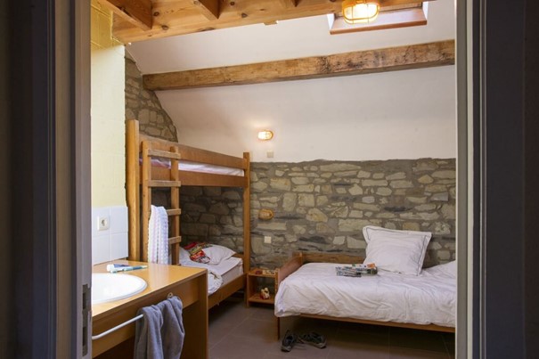 Ce gîte se compose d’un living très spacieux avec table de jeux, TV, une enceinte Bluetooth, une cuisine bar équipée avec coin salle à manger, 4 chambres (2 chambres avec 2 lits simples, 1 chambre avec 2 lits superposés, 1 chambre avec 1 lit superposé, 1 lit simple et 1 lit double en mezzanine) et dont 3 avec lavabo, 1 salle de bain (bain, douche, lavabo et toilette), 1 salle de douche (douche, toilette), une toilette séparée.