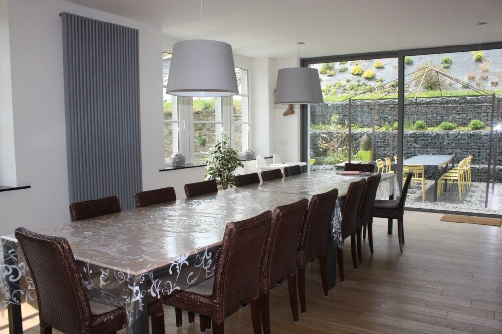 Gîte familial installé dans un ancien presbytère entièrement rénové disposant entre autres, d’un poêle à bois et d’un salon TV séparé, d’un grand jardin, BBQ et terrain de pétanque pour la détente. Vous disposerez de tout le nécessaire pour vivre confortablement à 12 (grandes pièces, nombreuses salles de bain, matériel adapté aux groupes …)