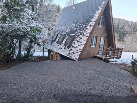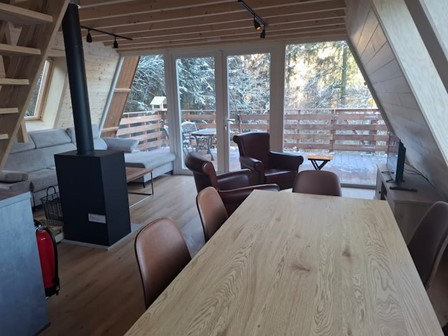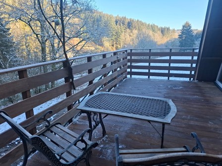 Notre chalet est situé dans un très bel emplacement au milieu de la nature, des forêts et au fond se trouve une rivière qui complète le sentiment d’être en Ardenne.